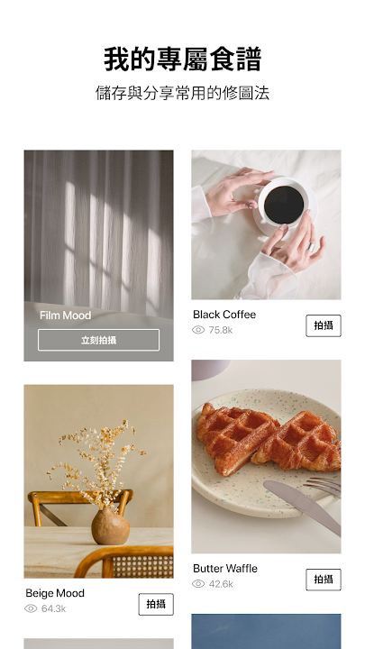 使用各樣濾鏡與進階編輯,讓您的照片充滿可愛魅力,同時營造底片相機的溫暖色澤。
