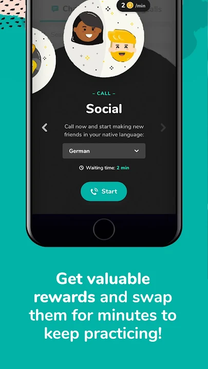 * 无需等待:只需轻轻按下通话按钮,就可以与说该母语的用户练习该语言。