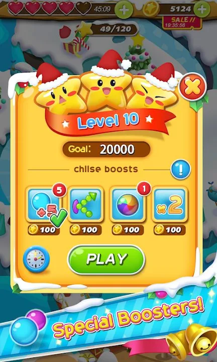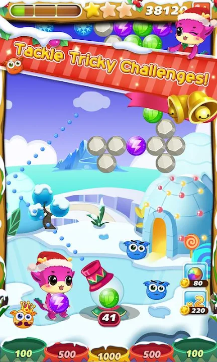 3.Clear all the bubbles on the screen to level up,and try to get 3 stars on each level.
