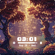 金色闪烁的光芒沿着像素化的森林缓缓飘落。适用于 Wear 操作系统