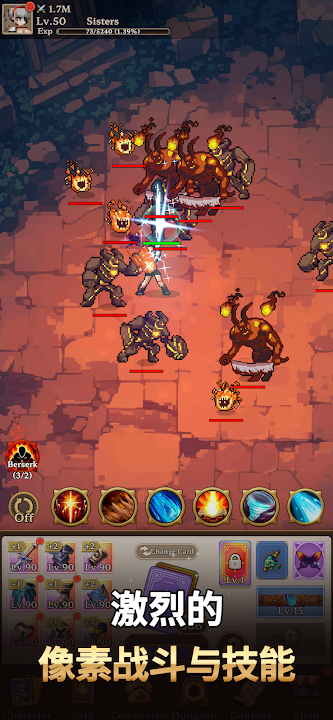 压倒性的技能、战斗与像素动作的放置养成玩法,