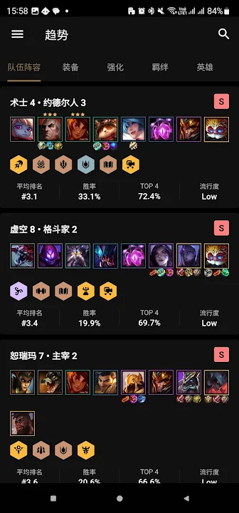 获取TFT的最新英雄,羁绊,协同作用和团队组成等级列表。 该应用程序的功能: