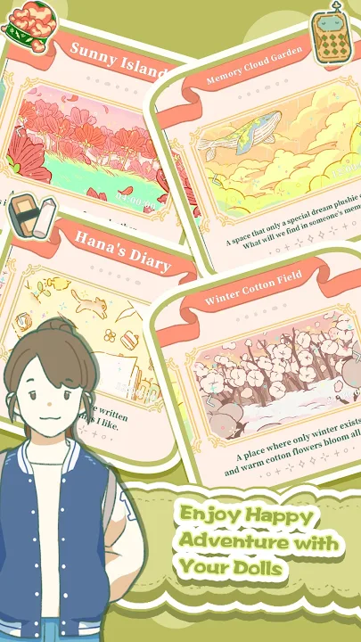 It's never boring in the game. Start a unique journey with your doll to get plentiful resources from the adventures. There are so many themed adventures you can choose, such as Sunny Island Adventure(Spring), Hana's Diary Adventure(Summer) and Memory Clod Garden Adventure(Autumn), etc.