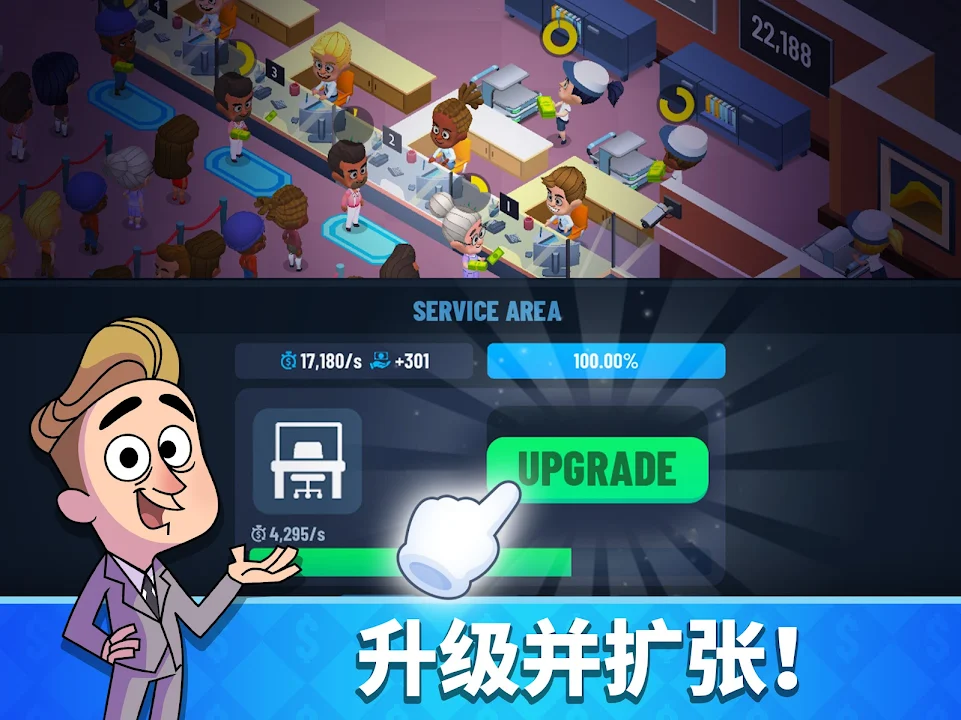 向世界展示你的才能!成为银行业的传奇人物,确定自己的道路,做个举世无双的银行大亨!无论是跻身于百万富翁还是亿万富翁之列,你的银行每天都会让你财源滚滚。
