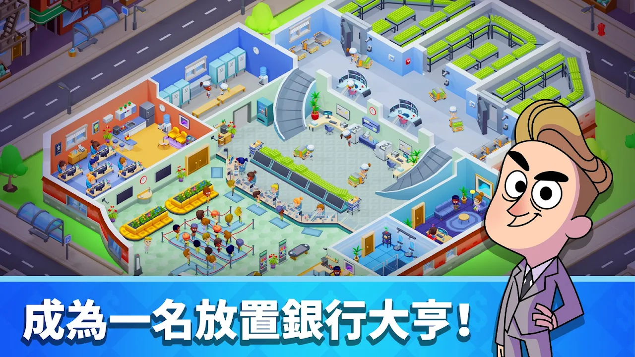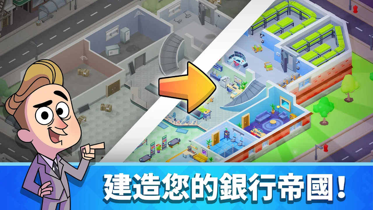這是款全新的放置型點擊遊戲。在這款放置型模擬遊戲中,您會開始經營一間小型銀行,並努力管理、擴展您的銀行,並追尋遠大的夢想:快來建造銀行帝國!