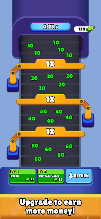 玩家可以合併按鈕進行升級。當下降的數字觸及按鈕時,玩家可以賺錢並可以升級球和按鈕。因此,它增加了玩家的收入。