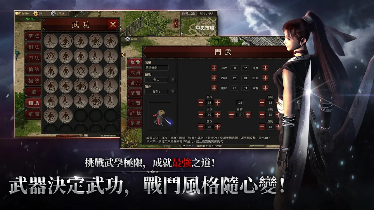 百種武功:拳法、刀法、箭法、槍法等十大類上百種技能,打造屬於您的專屬流派;