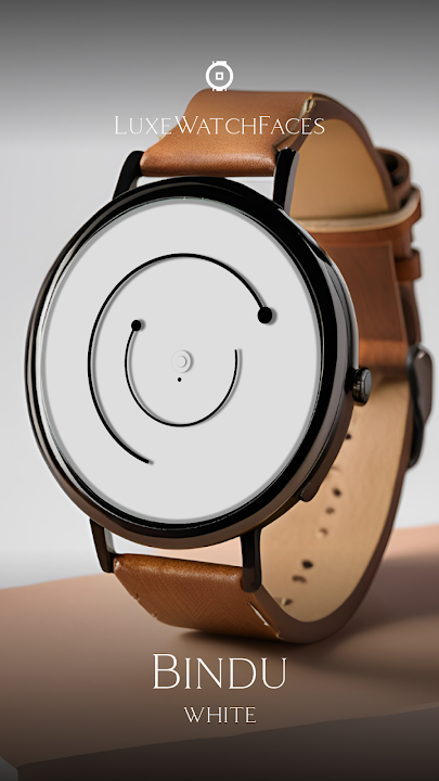 来自奢华表盘。 Bindu White for Wear OS采用简约设计,由圆形线条组成,代表时间。如何读取时间较大的外部点和线代表分针。较小的内部点和线代表时针。中间的点是秒针。