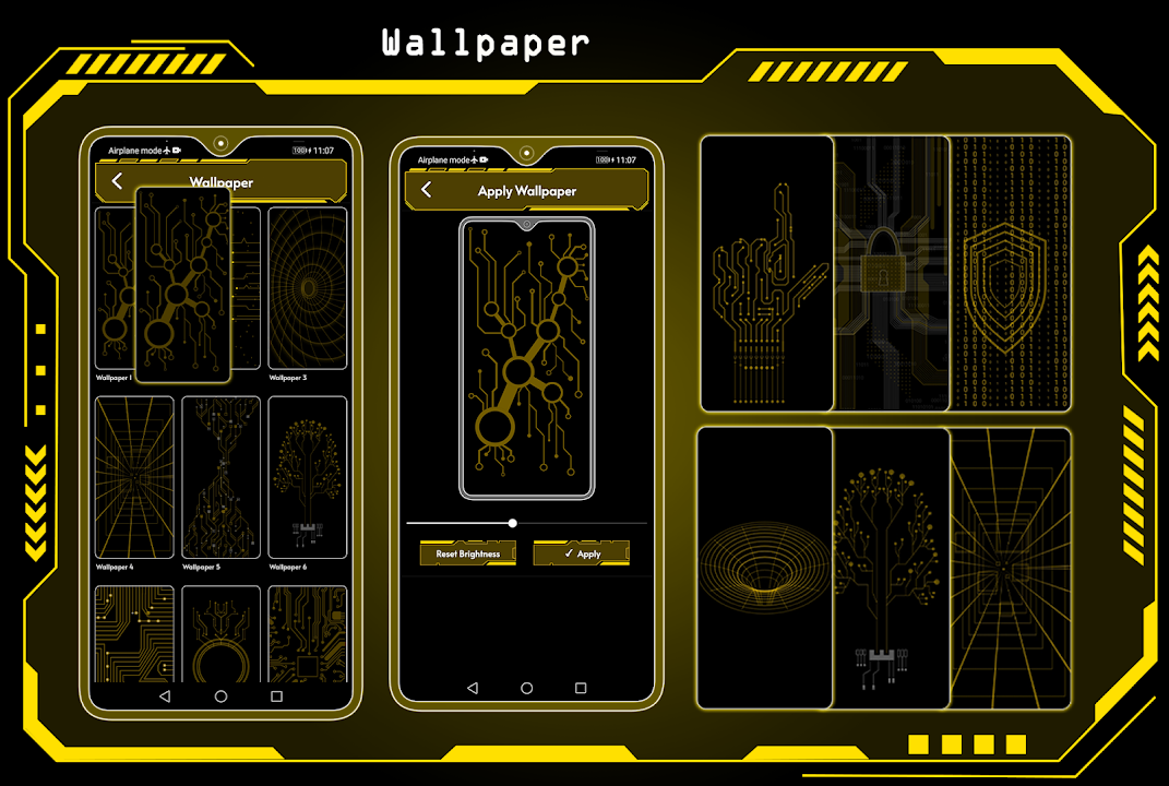 Dive into the world of dynamic hi-tech wallpapers that adapt to your chosen theme. Adjust color transparency to your preference and even use images from your personal gallery to personalize your home screen.