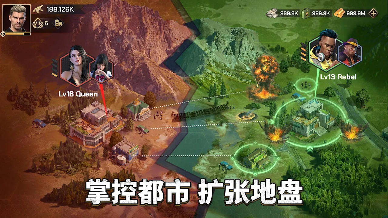 我们的黑金帝国只有一座城市可不行,安于现状只会被他人踩在脚下,用实力说话,从其他玩家手中掠夺资源占领城市,参与到多人的帮派混战中,见证一座座黑金帝国的崛起!