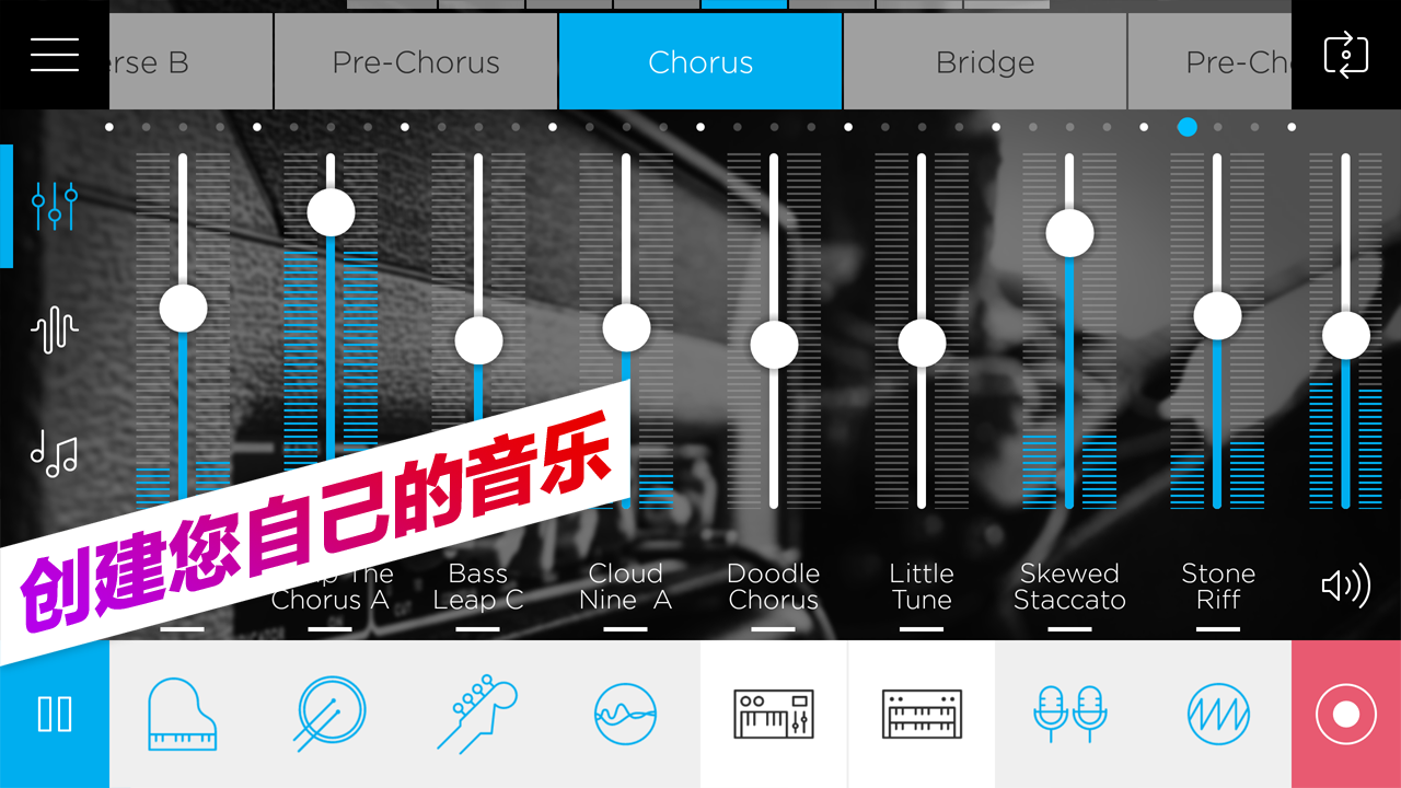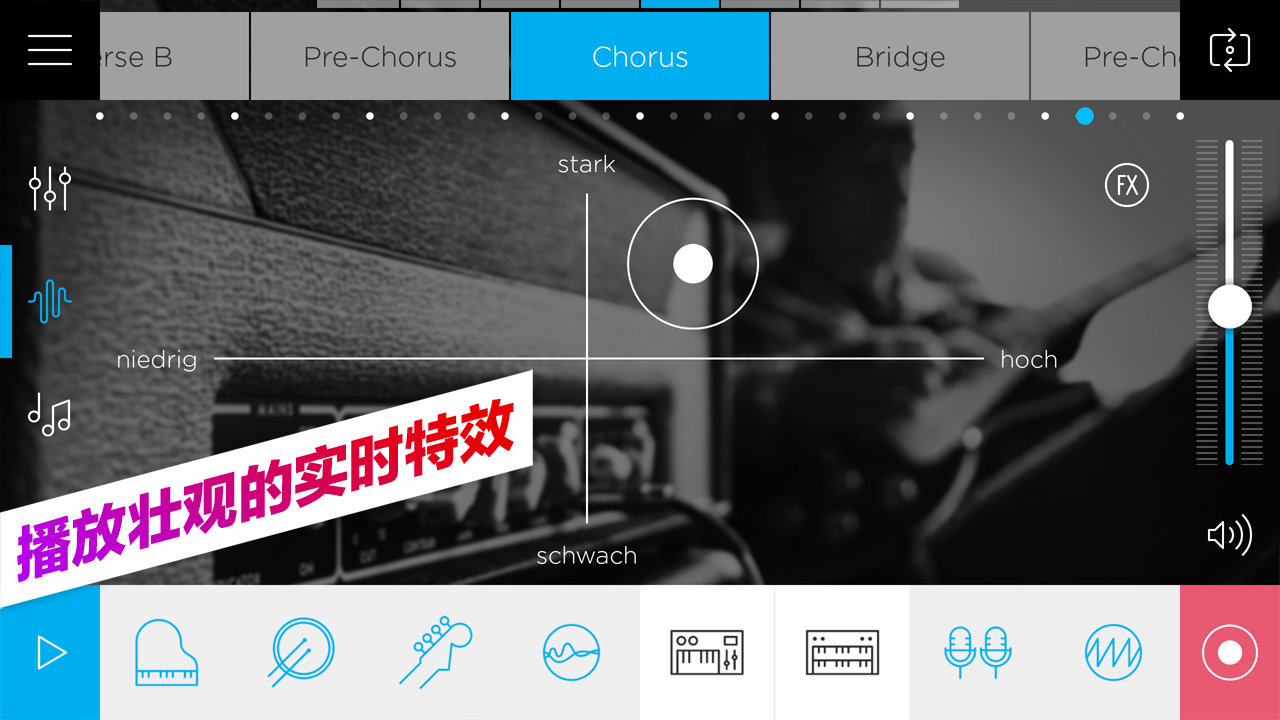 - 用易于使用的控件进行创作:调整节奏和和声、编辑歌曲部分和玩壮观的实时效果