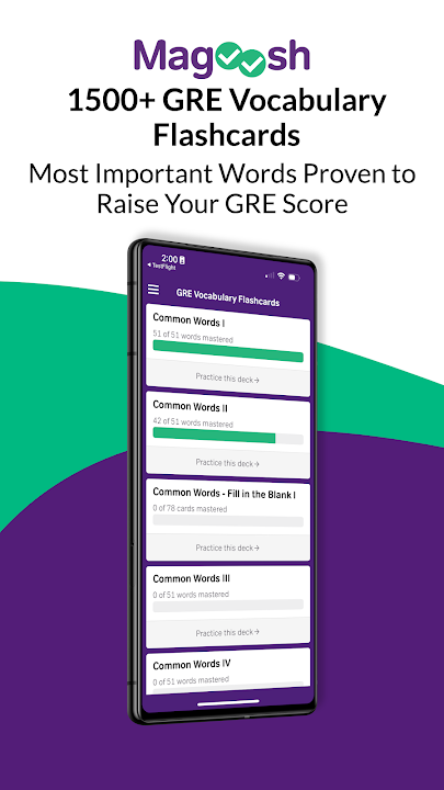 This app gives you access to all of Magoosh’s GRE vocab flash cards.