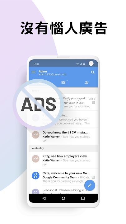 - 沒有擾人廣告阻擋介面,安心享用MailTime各種方便的郵件功能