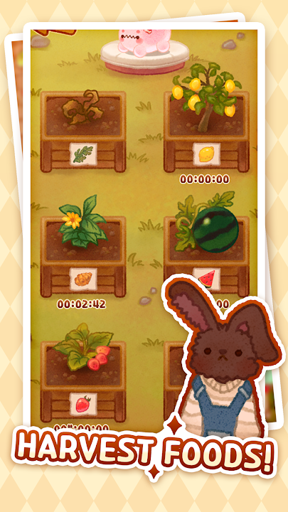 Various facilities and decorations can be built in the garden where Teablins roam freely. Some facilities affect the state of Teablins, such as improving cleanliness or reducing satiety.