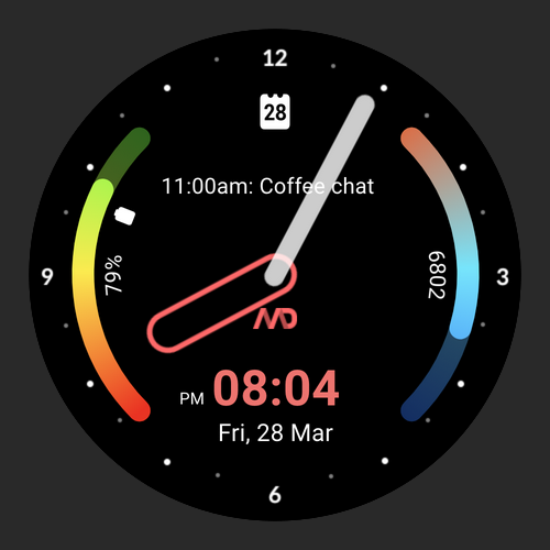 A101 是适用于 WearOS 手表的混合表盘它与 Wear OS 3 兼容,具有可定制的颜色以及多种复杂功能