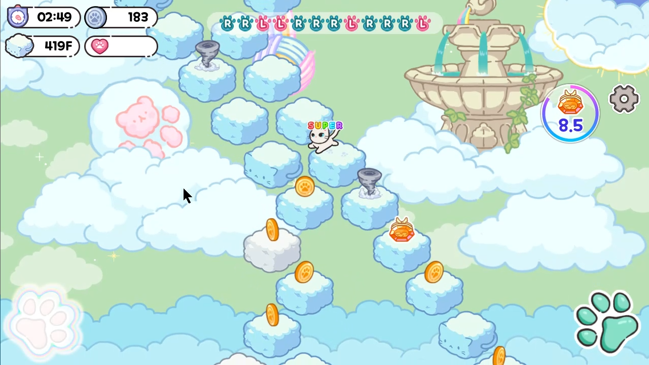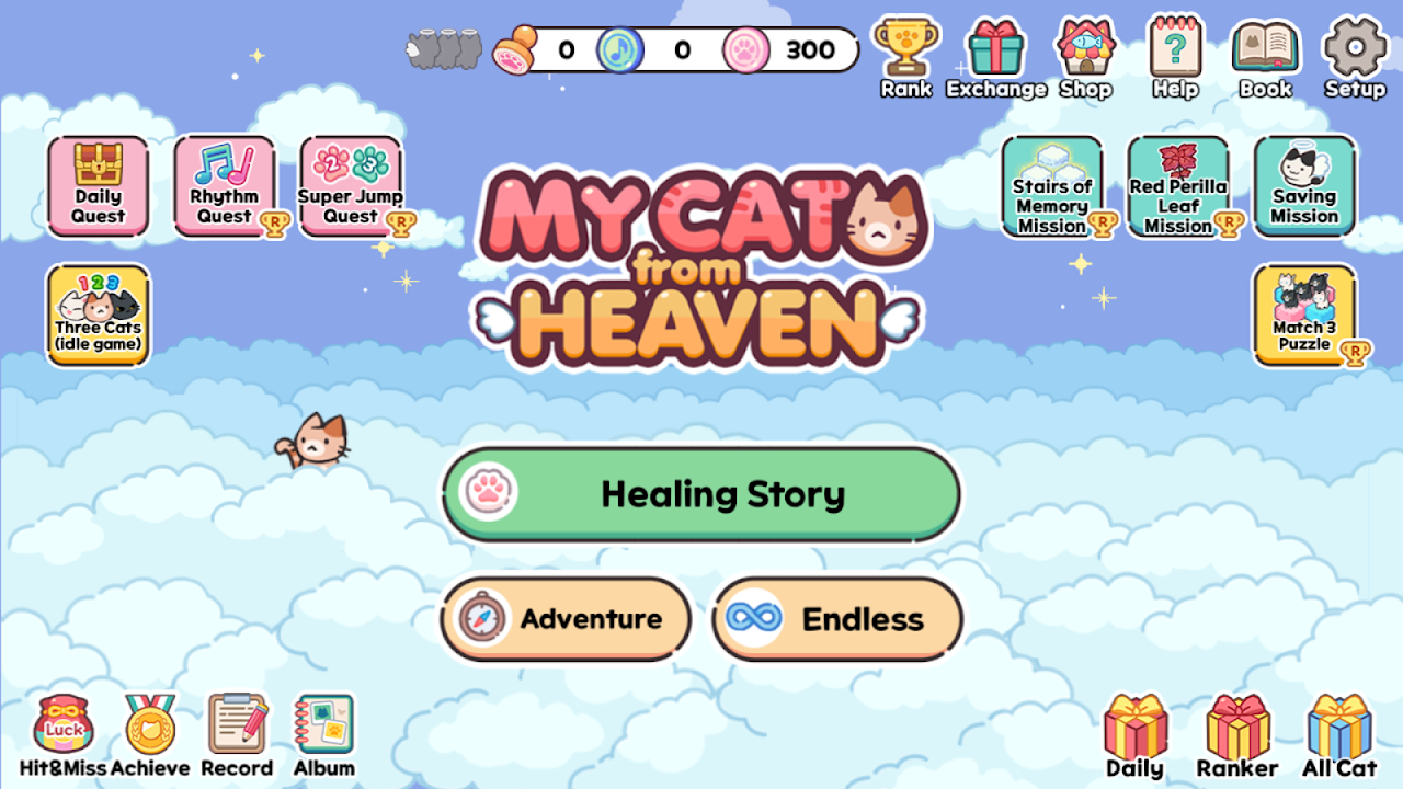 This is a game where a cat descends from the stairs of heaven to meet the owner