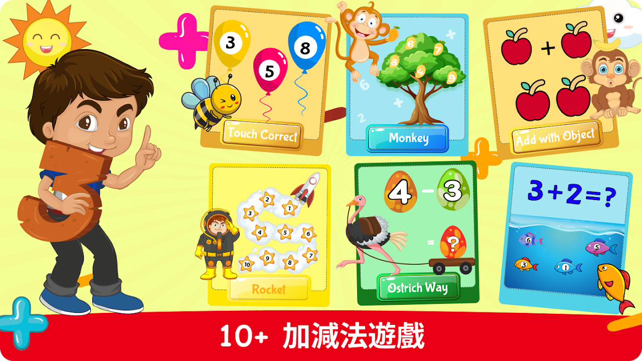 別再尋找了!這款兒童加減法應用程式將藉助有吸引力的減法遊戲和加法遊戲幫助孩子們輕鬆學習數學加減法,同時讓數學變得有趣。