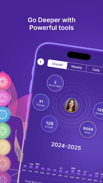 For seasoned meditators there are 100+ Guided Meditations, Sacred Sounds (chant and mantras) and Music tracks to meditate to, or you can set yourself challenges, gain milestone trophies and track your meditation journey via in-depth stats.