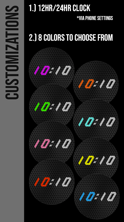 - 12/24 hour clock (will automatically switch with your phone settings)