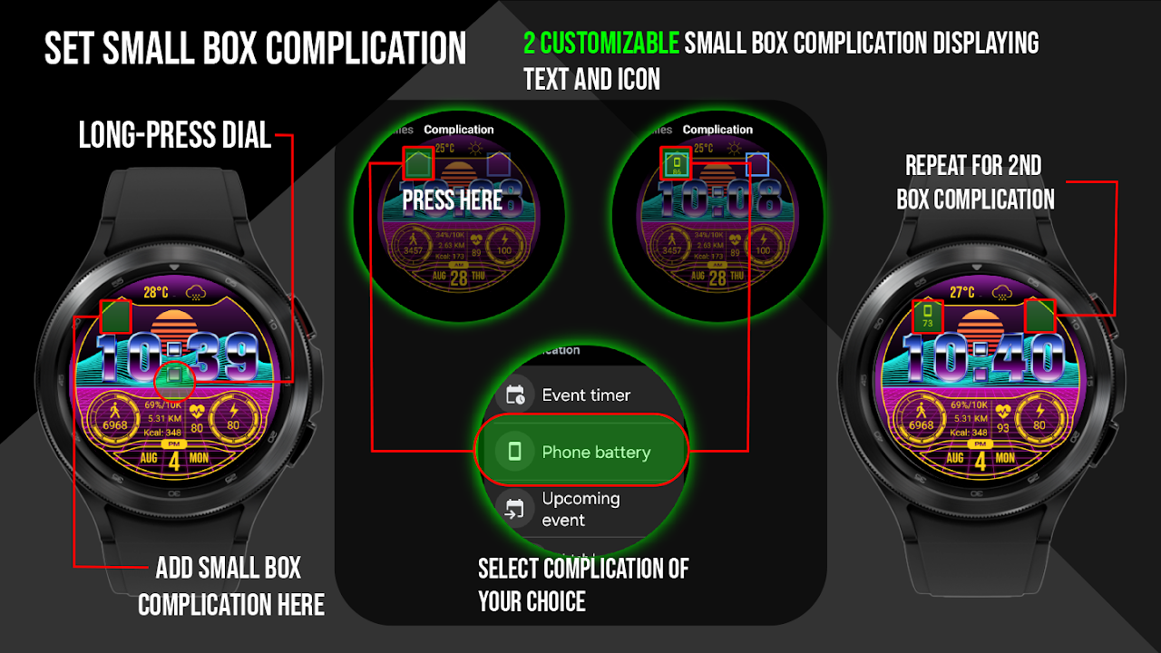 - 2 Small Box customizable complication (Text & Icon)