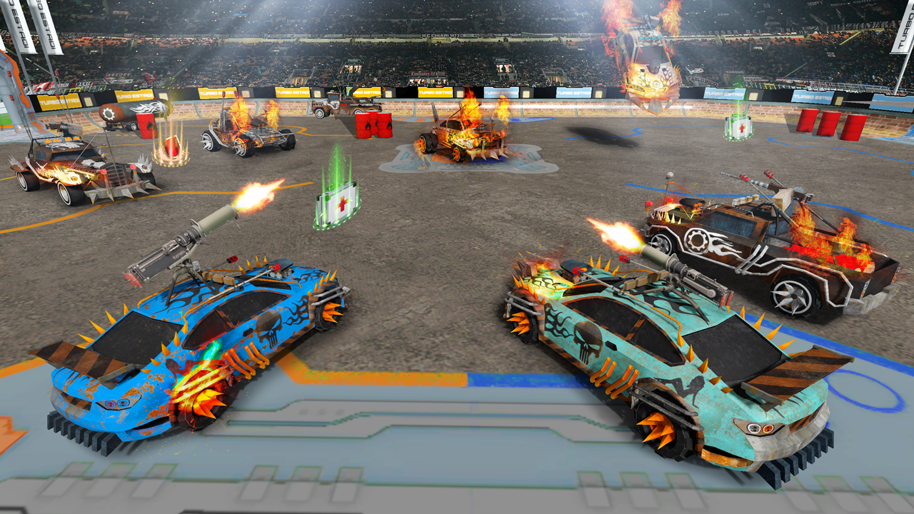 在這個破壞遊戲中,通過追逐它們來拆除汽車,火箭聯賽的比賽看起來很像。每當你看到一個敵人在它摧毀你之前殺死它,死亡賽車。每輛車都有特殊的尖刺,你可以像死亡賽車遊戲一樣用這些尖刺擊殺敵人。如果您有升級的武器庫,您可以輕鬆地參加賽車比賽。離線帶槍的汽車射擊遊戲,汽車可以爬上體育場看台的頂部,這為您在死亡賽車遊戲中提供了額外的優勢。