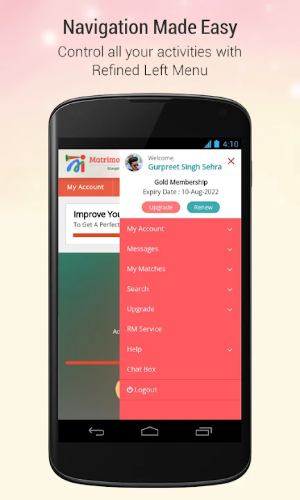 我们的应用程序在战略设计与多种搜索功能,使搜索的准新娘和新郎更容易和更快的。用户可以很容易地通过免费应用程序注册创建自己的配置文件。
