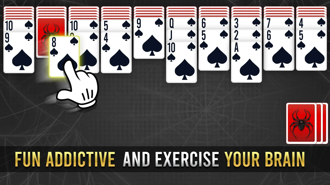 To win the game, the player must remove all the cards from the table by building columns organized in descending order. Spider Solitaire game challenges to stack all cards of each suit in descending order to solve the puzzle. Best brain game for adults, it's fast and addictive Solitario spider game.
