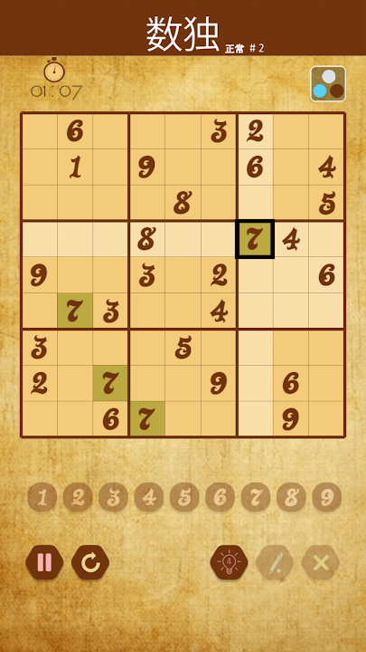 * 在數獨 9x9 遊戲模式棋盤遊戲中解決數獨免費謎題