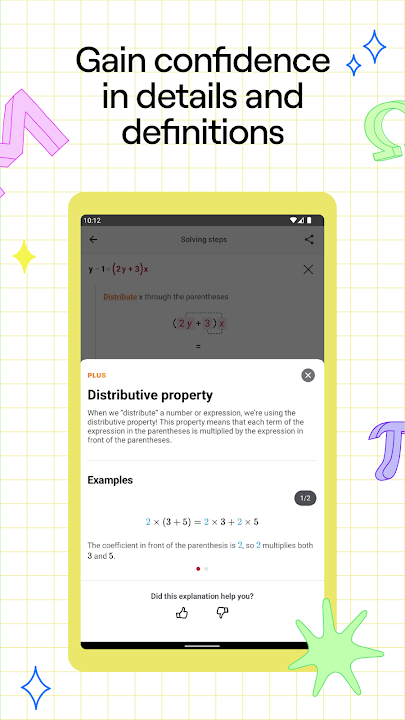 Self-paced learning: Photomath’s instant support is like having a 24/7 virtual tutor. Checking your homework before dinner? Stuck on a problem at 2am? We can help. Follow our detailed steps, taking whatever time you need to review definitions, rationale, and more – all within the explanation.