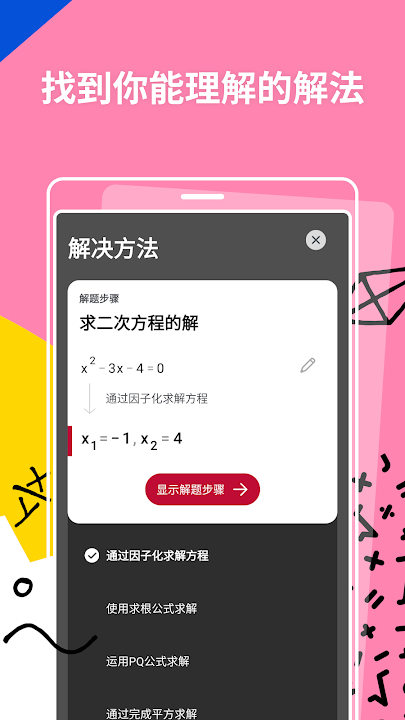 使用裝置的相機即時掃描列印文字和手寫數學問題,或使用我們的科學計算器輸入和編輯方程式。 Photomath將每個數學問題分解為簡單易懂的步驟,這樣您就可以真正理解核心概念,並可以自信地回答問題。