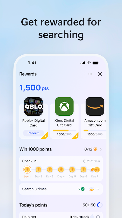 Microsoft Rewards: Earn more rewards is easy, simple, and fun. Just search with the Microsoft Bing app and you’ll earn faster than ever