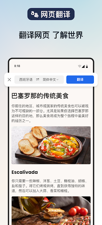 无论你在海外网站进行购物,还是在努力开始学习新语言,当你打开海外网站时,浏览器会自动识别语言并提供翻译功能,直接对网页进行翻译,语言不再是你认识世界的障碍。