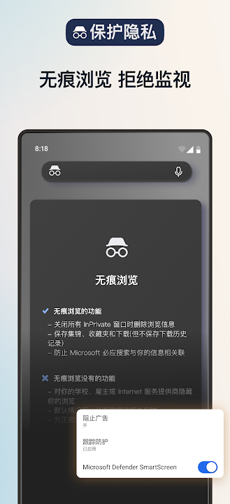 InPrivate (隐私模式)标签页不会存储你的浏览数据(如 Cookie、历史记录、自动填充信息或临时文件),更好保证搜索历史记录的私密性。