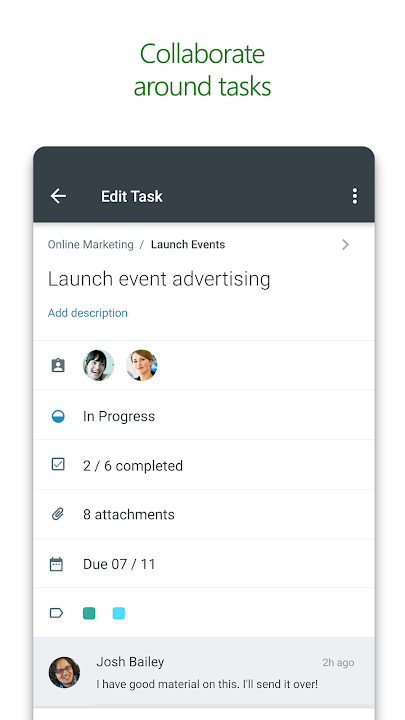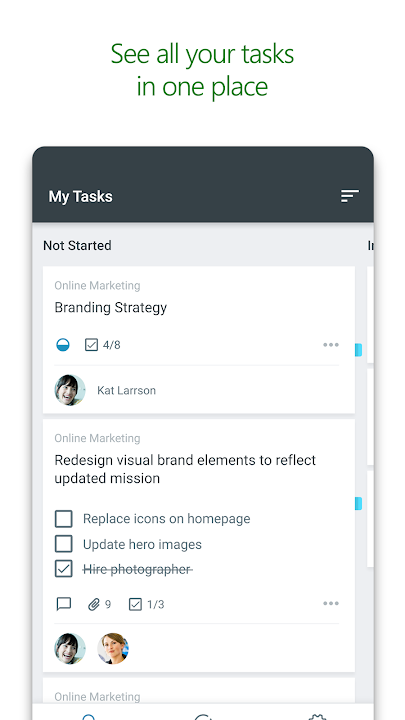 Built for Office 365, Planner lets you work together on the same tasks, attach captured photos directly to them, and even have conversations around tasks without switching between apps. With Planner, all your team’s discussions and deliverables stay with the plan and don’t get locked away across disparate applications.