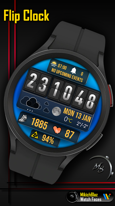 大翻转数字,12/24 小时格式(取决于您的手机系统时间设置)。可以更改时间周围的框架,并且有 3 种样式可供选择。