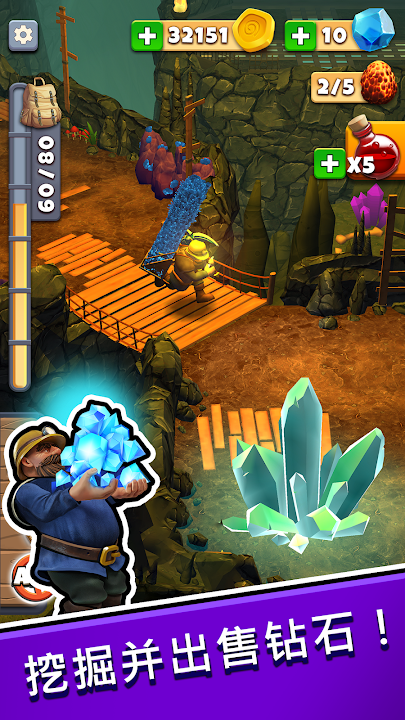 作为一名矿工,你有独特的机会在深入地牢的过程中收集黄金和有价值的资源。但要警惕,随着深入挖掘,挑战会变得越来越困难,你将面对越来越强大的敌人。