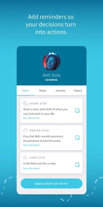 無論是祈禱的人,請他們喝咖啡或告訴他們你與神的旅程,選擇自己信仰的步驟和MissionHub讓你專注於你所關心的人。