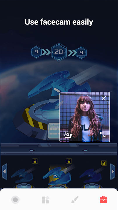 + Overlay face camera: you can record your face and reaction in an overlay window, which can be dragged to any position on the screen and customized to any size. It helps you make a special video.