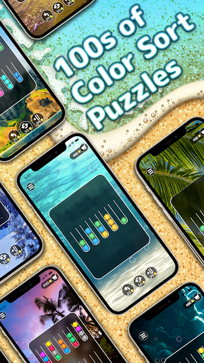 Relax with Bubble Sort puzzles and discover calming backgrounds as you win!