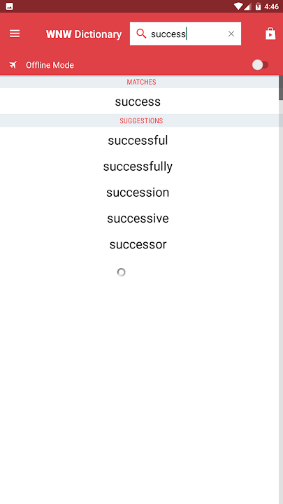 • Search autocomplete helps find words quickly by displaying predictions as you type