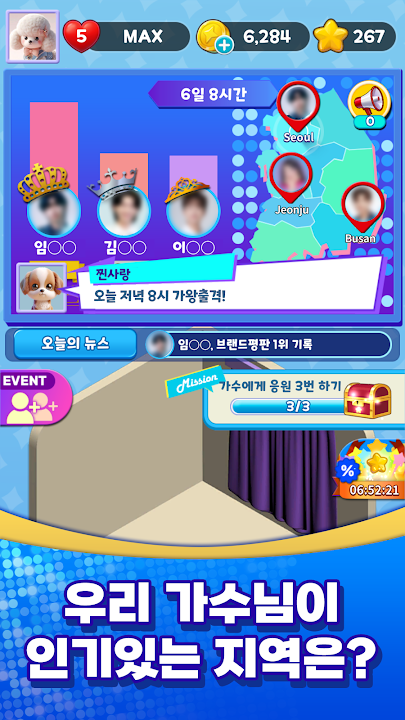 Solve match-3 puzzles, collect stars, and vote for your favorite trot singer!