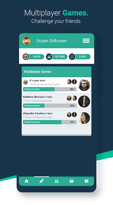 您将能够在多人游戏中与其他玩家对战,证明您在游戏中掌握的理财技能,甚至可以邀请和挑战您的 Facebook 好友,向他们展示您如何一步步成为理财大亨。