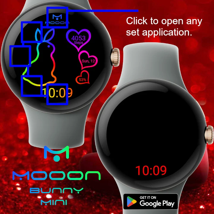 Colorful bunny with hearts for Wear OS.