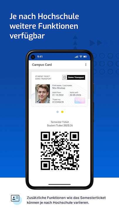只有當您的大學與Studo有數位校園卡合作時,才可以使用該應用程式。這可確保數位身分證得到您大學的所有機構的認可。您的身分證件的真實性也可以使用二維碼進行驗證 - 這意味著外部機構也應該毫無問題地識別該身分證件。