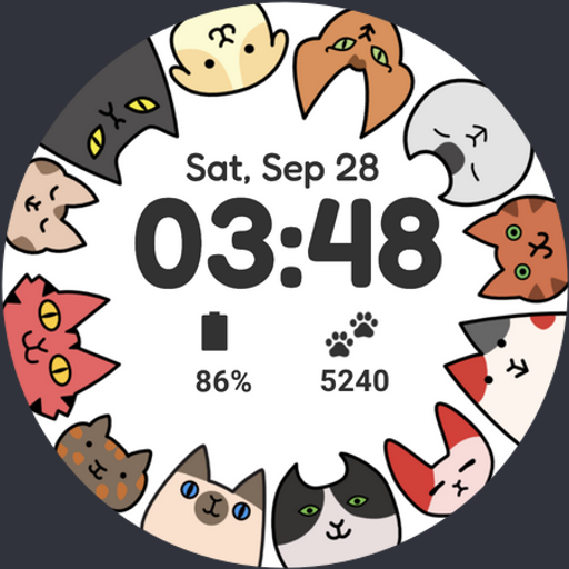 Cute Cats 錶盤是專為愛貓人士設計的 Wear OS 錶盤錶盤具有旋轉貓錶盤和 AOD 模式