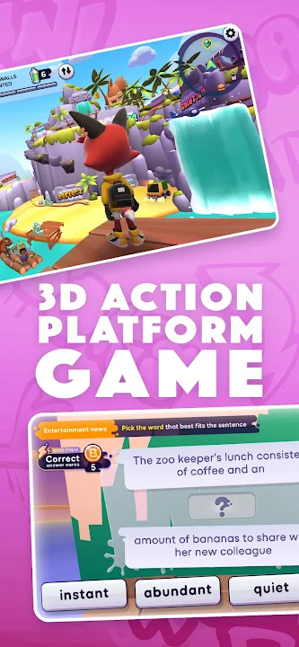 Word Tag is not only an everyday collection of learning games, spelling or reading games like other learning apps. It is a fully featured 3D action platformer game worth playing that will improve English speaking skills helping with grammar, pronunciation, from everyday to advanced English vocabulary. Whether learners are just starting to learn the English ABC’s and want to learn to read, or want to study English as a supplement to class or school, Word Tag is a valuable tool for either classroom learning, family learning, kids or adult learners.