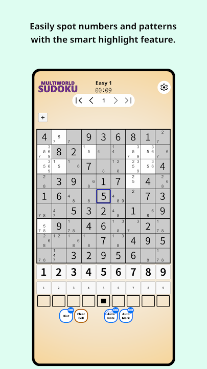• Selected Number & Note Highlighting: Helps you easily apply various Sudoku strategies!