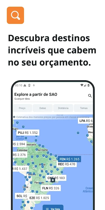 With our Android app, searching and finding promotional airline tickets will be much faster and easier. In a few seconds we will show you the best flights available on thousands of websites. On domestic flights, we show prices without surprise fees!