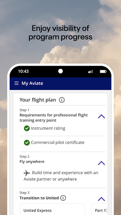 My Aviate 是專為 Aviate 參與者設計的應用程序,Aviate 是美聯航行業領先的飛行員職業發展計劃。