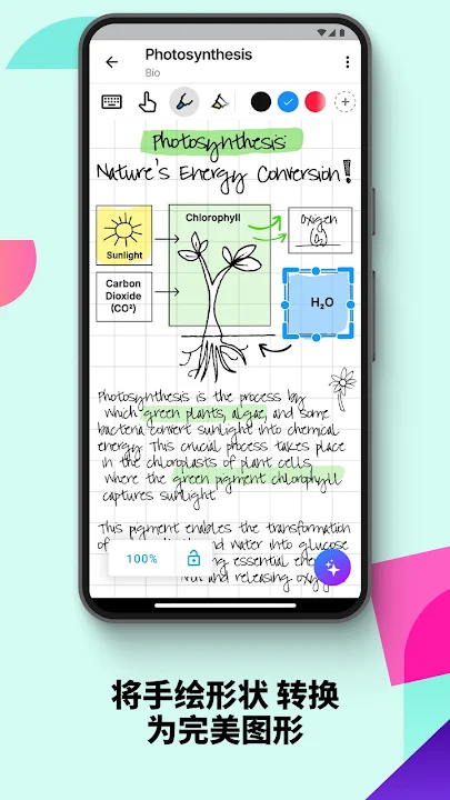 轻松手动创建令人惊叹的笔记和专业文档,在无限版面上集思广益并无缝批注 PDF。MyScript Notes 采用世界领先的 AI 手写识别技术,提供了一个动态平台,让手写、文本、绘图、图表和图像在可扩展版面上无缝共存。通过直观的笔势增强您的笔记体验,轻松将手写内容和手绘形状转换成输入文本和精确形式。